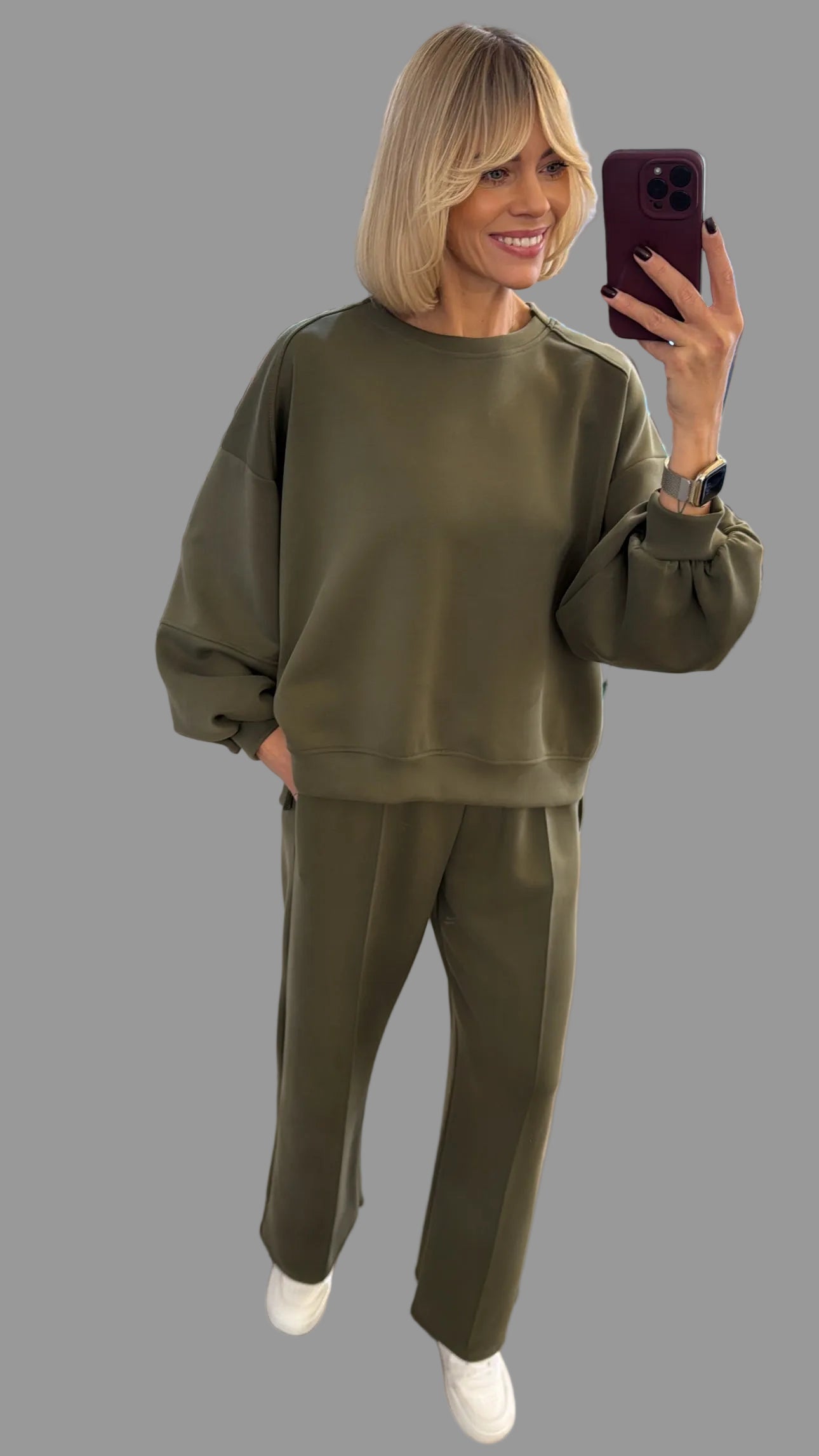 Kelnių liemuo neištempus gumos 35 cm x 2; ištempus gumą 47 cm x 2; klubai - 54 cm x 2; šlaunis - 29 cm x 2, kelnių bendras ilgis 105 cm.