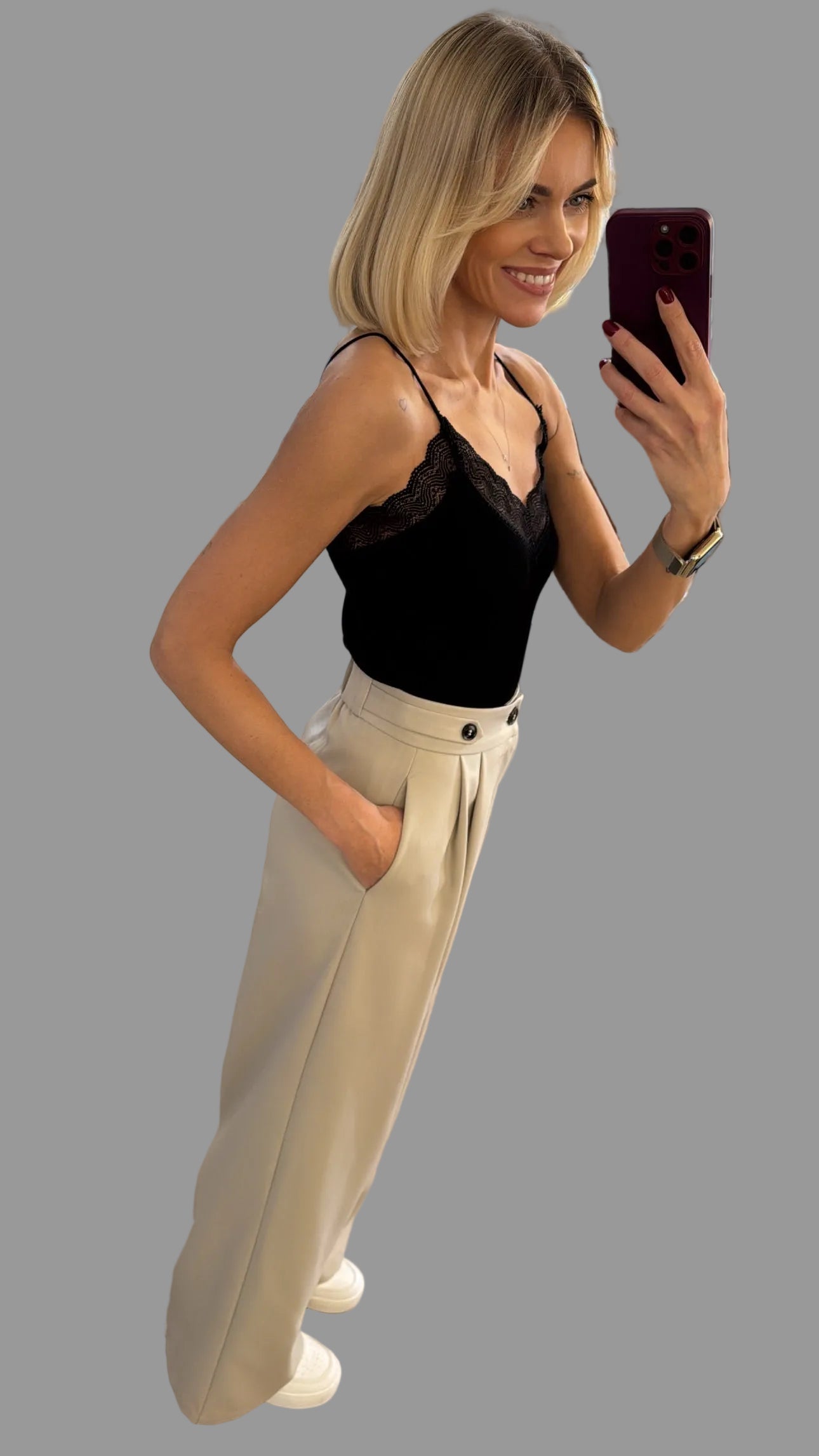 L DYDIS: liemuo 40 cm, nugaroje gumytė, liemuo tempiasi iki 43 cm. Bendras ilgis 114 cm.