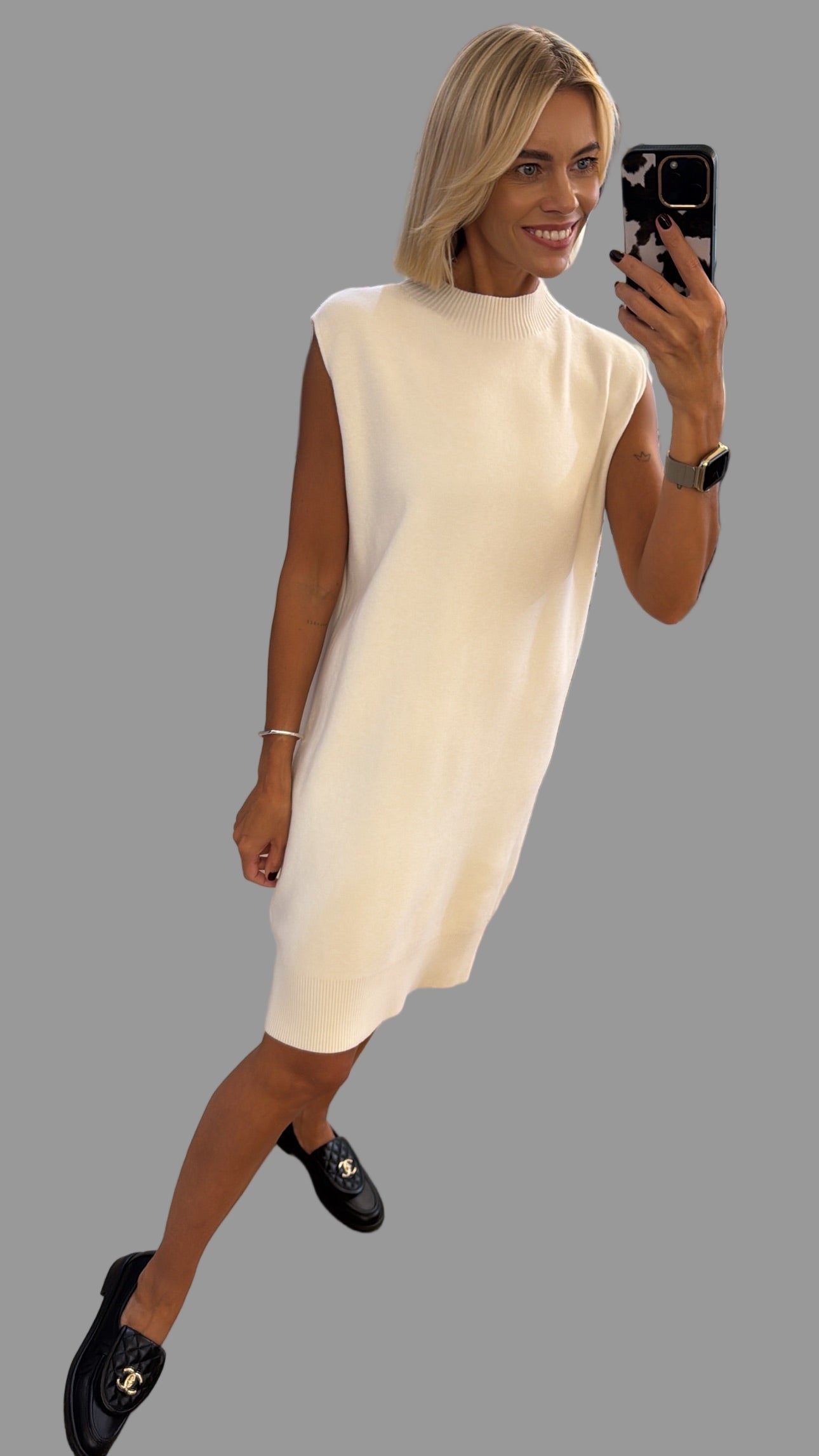 Suknelės ilgis 90 cm, krūtinė ~ 54 cm, klubai ~ 55 cm.